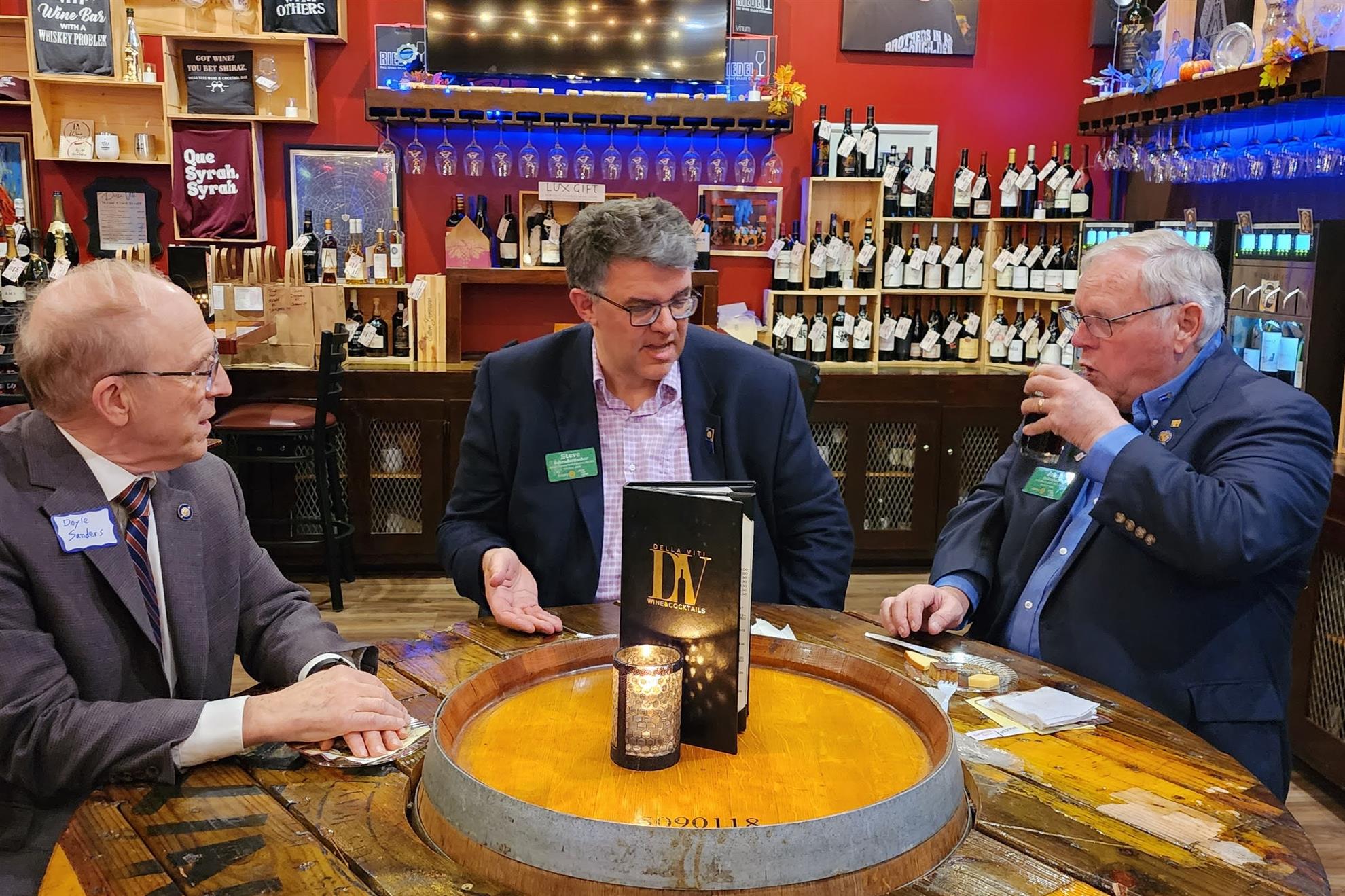 The evening at Della Viti Wine Bar, hosted by the Rotary Club of Ames and Ames Morning Rotary, brought together around 30 Rotarians from across the district for excellent fellowship and, of course, a little wine.
